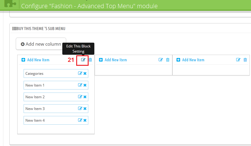 Navigate to Modules >Fashion - Home categories and click on the "Configure" button for setting.